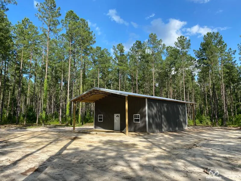 PRICE REDUCED!! Gobble Creek Retreat is the perfect small lowcountry getaway on a private piece of rural hunting and timber land located in Jasper County, SC. There is an 1,800 Sf (30x60) pole barn, with 1,080 Sf (30x36) enclosed, and two 360 Sf (30x12) porches, one on the front and one on the back. The building has a 12 eave height, 4/12 pitch metal roof, 12x12 opening with barn doors on the back for equipment as needed, and a walk door with two windows on the front. The entire 1,800 Sf building has a monolithic concrete slab. The building has power with lights and receptacles, and there is also a new well on site which also feeds water to a small pond. These improvements sit back towards the middle of the property, hidden from the road in the large pines, giving it supreme seclusion and privacy. There is a custom-built wood fence up front with 16 wide double 8 entrance gates. T...