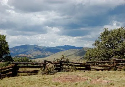This exquisite property and home consists of 73.97 acres, surrounded by a juniper-pinon woodland, with oak trees and native grama grasses, set atop the foothills of Blue Mountain. The home has unsurpassed views of Blue Mountain to the north and the Puertacitas and Haystack Mountains to the south. The mountain top home-site is surrounded by a split-rail fence accessed by a paved driveway and electronic gate. The custom 2BR/1.75BA home is handcrafted by Rainbow Adobe builders of pier and beam construction with stucco finish using the finest materials. Its focal point is a large living area accented by fine tongue and groove ceilings supported by a large peeled pine beam, a kiva fireplace and custom built-in shelving and cabinetry. Over-sized windows frame breathtaking views of the surrounding mountains. The gourmet kitchen is a cooks delight with ample work space, a Jenn-Air 6-burner range and vent hood, over-sized refrigerator, walk-in pantry, custom made cabinets and island. A hallway off of the living area leads to a home office, utility room and guest bedroom with bath. On the opposite side of the living area is the hallway leading to the Master Suite with its own Kiva fireplace and separate whirlpool tub and exercise room. Views from the exercise room are breathtaking. Both bedrooms have prominent views of Blue Mountain. A raised deck surrounds 1/3 of the home and affords space for outdoor entertaining. The home is equipped with a 3-bay carport and attached storage building.