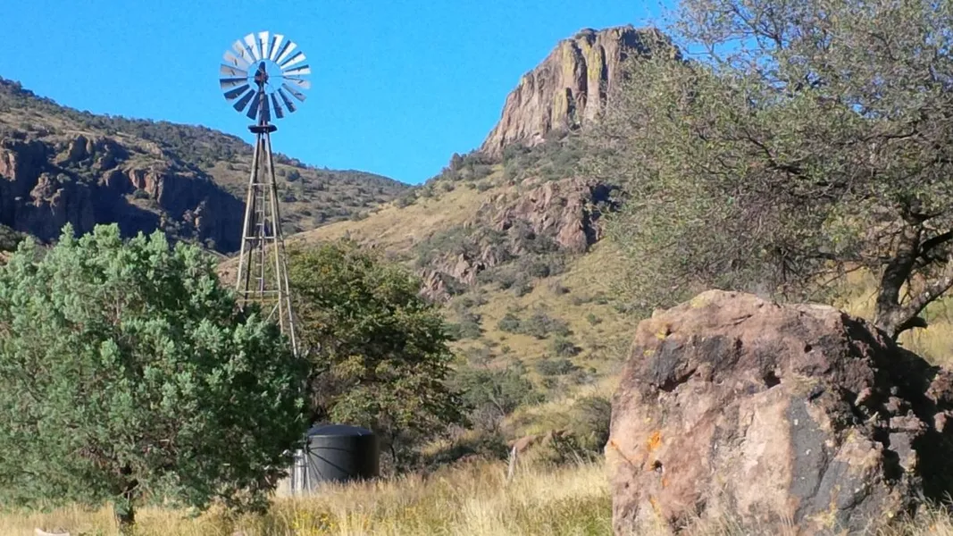 Two large header tanks are located on the slopes of Livermore and natural water abounds in creeks and canyons throughout the ranch during the monsoon season in the summer.