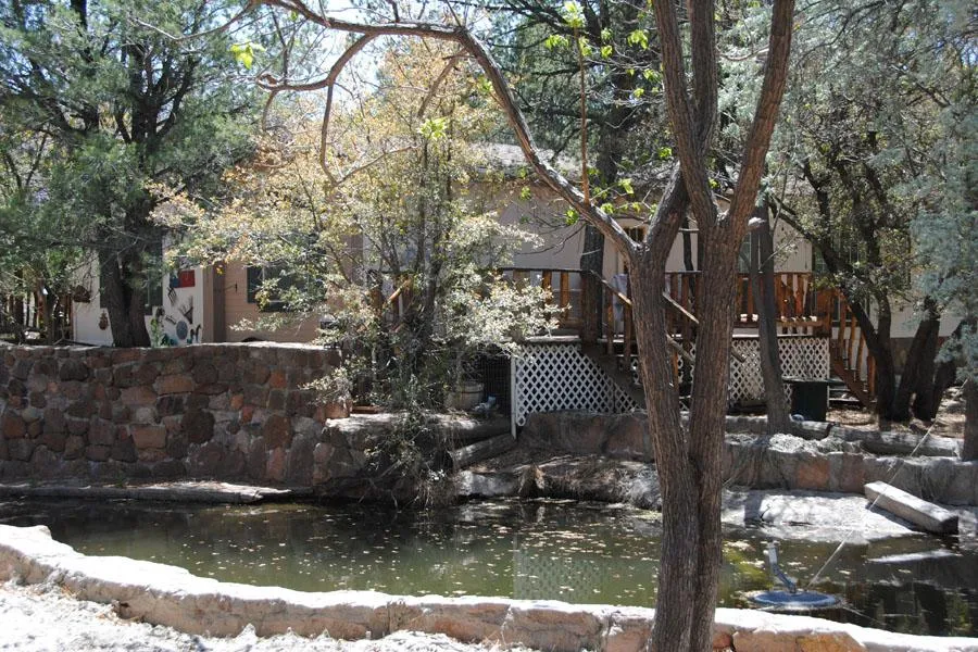 Oasis in the Desert. Beautiful, park-like setting w/90'x35'x6' stocked pond & numerous trees. 1994 Schult triple-wide 3BR/2BA manufactured home w/1,951sf on 6.9 acres. Maple kitchen cabinets, breakfast bar/island w/adjacent Living Area. Second formal Living Area & Dining Room. Sequestered large Master Suite w/separate dressing area, double vanity & bath. Large guest BRs. RV & RV shed. Rock work. Good well.