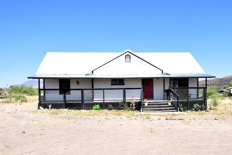 This three bedroom two bath home sits on 2 Acres. It features a metal roof, covered front porch, rear entry carport, covered back patio and a Large Kitchen. Great views with city services. Plenty of room for a shop or guest house...