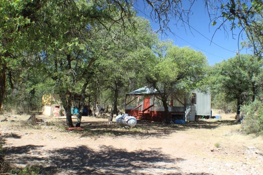 Remodeled cabin with 2 loft bedrooms & a covered, shuttered front porch set among 5.76 acres with lots of native trees. Interior includes a living area with a wood burning stove, dining area, kitchen, full bath. Also includes a newly built bunk house!
