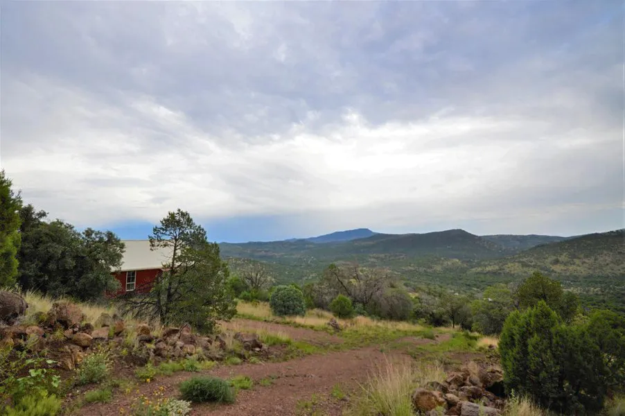 1) The views are possible because this acreage is at an elevation of 5800 to 6000 feet. The metal roof allows for the installation of a water catchment system, and there are two water storage tanks on the property.
