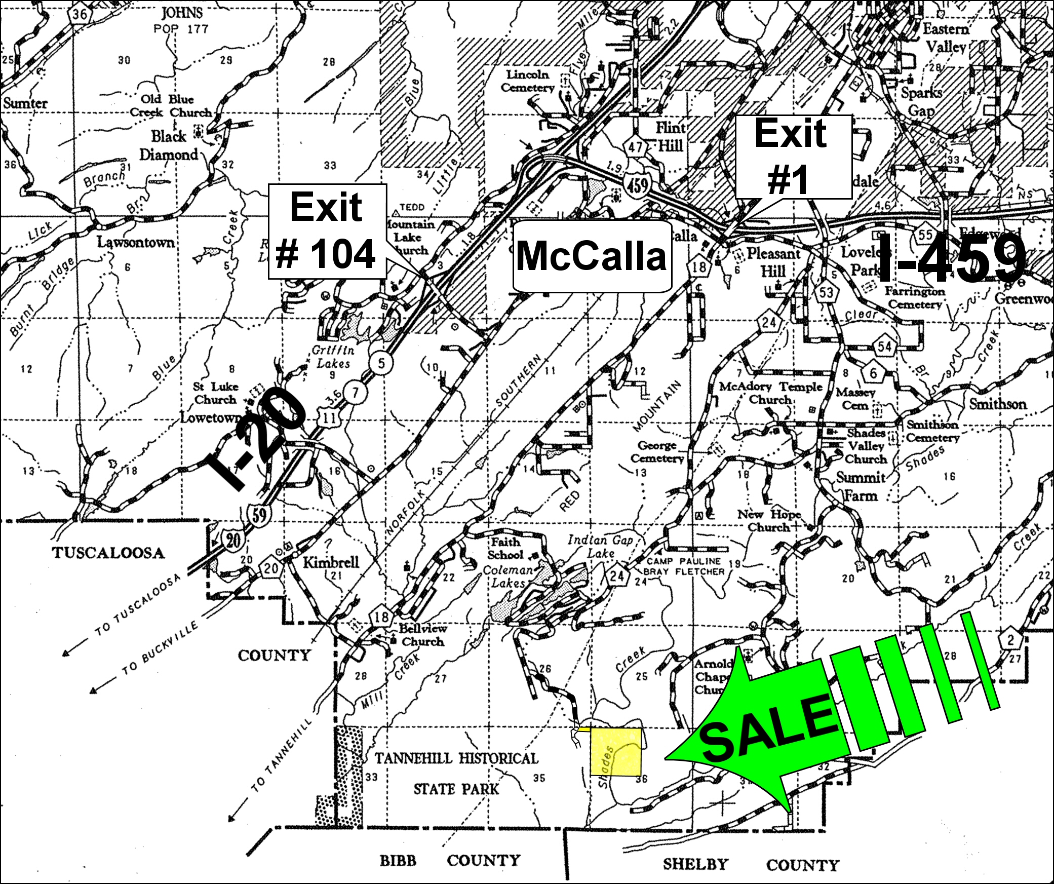 Located in SW Jefferson Co. 1 mile east of new Tannehill State Park addition
