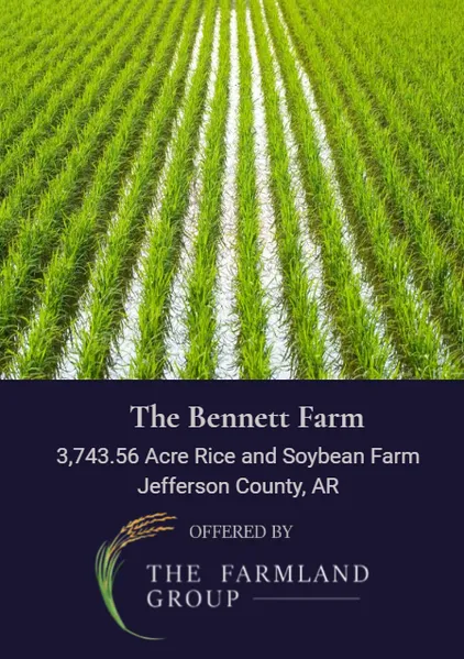 The Bennett Farm is an investment grade rice and soybean farm. It contains two tracts but the majority of the farm is in one large block. The property is irrigated by 29 wells as well as re-lift access and irrigation easement from the Plum Bayou Irrigation District. This portion of Plum Bayou does not charge for water pumped from Plum Bayou The farm has been expertly managed and developed to increase the ability to grow good rice and soybean crops. There are several chemical and fertilizer outlets, equipment and parts dealers, and grain elevators nearby.