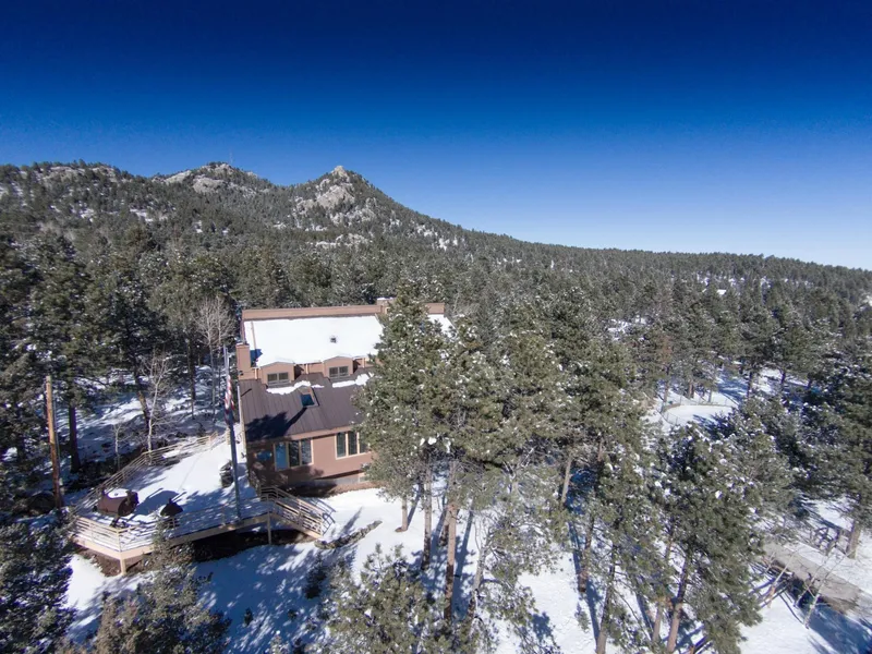 Spacious, meticulously maintained mountain living with paved access all within 10 minutes of C470 or Conifer. Pass by open equestrian properties on your way home to 2.2 acres, multiple decks, southern exposure, and views of the forest, mountains and city. Private master suite with huge master bath, fireplace and covered patio. Updated kitchen with gas range, double ovens, granite. Sun room with built in hot tub, vaulted ceilings, 3/4 bath, pellet stove & skylights, game room with balcony, 2 large dining areas, family room with wet bar, living area with 2 story rock fireplace and open beam cedar ceilings throughout. Efficient natural gas/hot water heat, whole house water filtration, Pella windows, new roof, security system. NO HOA & horses allowed.