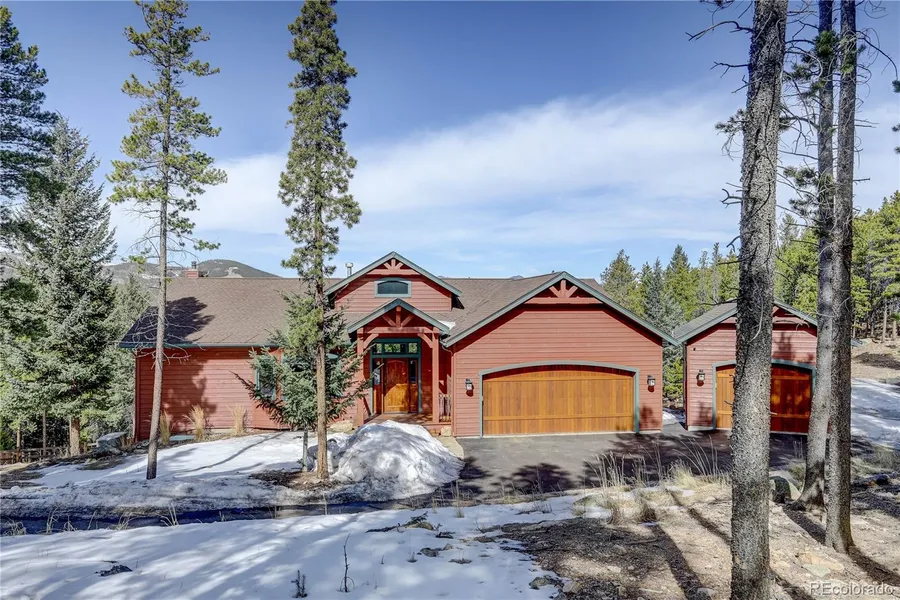 Meticulously maintained with too many features to list. This gorgeous mountain home will have you spellbound from the minute you enter. The captivating views will give you pause. A total of 3539 sqft, featuring an open floor plan, soaring picture windows and mountain-style accents. The beautiful kitchen with it's knotty alder cabinets and slab granite opens to the dining and living areas. Located on the main floor, the master bedroom features a 5 piece master bath and walk-in closet. Also on the main floor is a second bedroom with en suite full bath and a guest powder room bath. The lower level is a full walk out basement with access to the 4.0 acre lot, partially fenced for play, pets and plants. The basement hosts a private guest suite with two generous bedrooms and 3/4 bathroom. Enjoy a game of pool in the entertainment/living area complete with wet bar. The theatre room is already equipped with a 65" TV and surround sound. Warm ambiance achieved with the pellet stove. For your listening pleasure, the Sonos system and B&W speakers are set throughout the house. This home is complete with a two-car attached garage and an additional 394 sqft detached garage. Mountain life at it's best, located on beautiful Shadow Mountain this home is 10 minutes to US 285, shopping, dining and services. An abundance of wildlife and just moments to Arapahoe National Park.