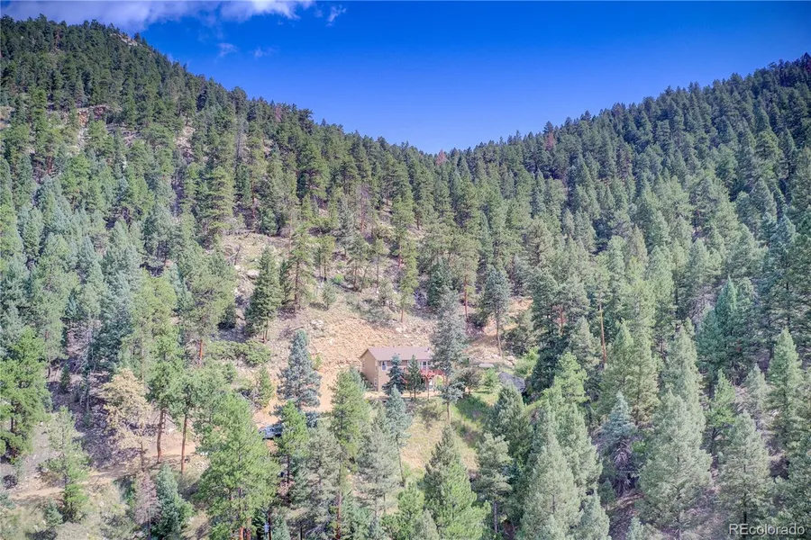 Own your own private forest! Bring your toys; ATV's, Side by Sides, Jeeps or Mountain Bikes - 47 acres to enjoy and explore. Great get-away or year round home. Comes complete with bunkhouse that includes a wood stove Kitchen has been upgraded with beautiful cabinetry, stainless appliances and a pot rack. Main floor access through Laundry. Energy efficient construction with room to expand on lower level. Very private setting close to Reynolds Open Space Park and the Platte River, yet convenient to Conifer shopping and amenities. Birds and wildlife abound. Top of the world views. Sunny South Facing deck. Domestic Well, Propane and Wood Heat. 2-Bedroom Septic. Built in 2000 and includes Fire Suppression System.
