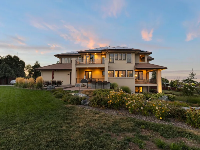 Welcome home to one of the most beautiful & stunning views a property has to offer. Majestically perched on a ridge in Arvada with sweeping vistas of downtown Denver & the Rockies, surrounded by 1.6 acres of private fenced land, this superbly designed custom walk-out home provides the ultimate in seamless living and entertaining. This master piece features every upgrade you can imagine. The open floor plan & wide bright windows create airy harmony in space-rich rooms filled with sunshine and incredible views of the Front Range. Mahogany hardwood flooring, vaulted ceilings, crown molding, & arched doorways add to the tasteful decor of the main level's grand living room, formal dining room with adjoining butler's pantry, home office and a library and chef’s delight kitchen. The stunning primary suite is a homeowner's retreat like no other with Juliette balcony overlooking the great room, coffered ceiling, gas fireplace, walk-in closets, private outdoor balcony and an ensuite spa-like bathroom with a bidet. Second floor laundry and additional bedrooms, including one with a window seat & another with a secret room. Accessible by a sweeping staircase, the lower level is devoted to comfort and leisure with a home theater, wet bar, guest bedroom, and space for storage. Speaking of storage, there’s plenty of it in the oversized 4-car garage. Spectacular outdoor living with two levels to breathe in fresh mountain air and outside kitchen. You have your choice of numerous decks, each ready for you to wine and dine al fresco, or you can simply enjoy watching the sunset from the covered patio. Stroll along stone paths in the professionally landscaped yard, complete with two streams, ponds, mature xeriscaping, fire pit sprinkler system, and multiple spots to pause, sit and admire the spectacular view. Reside near a wide variety of restaurants, shops, recreation, and entertainment. Easy access to I-36 and I-70 for commute to Boulder, Denver, the mountains and beyond.
