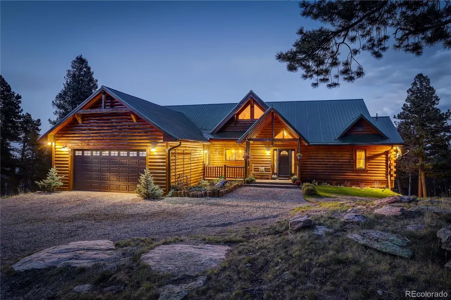 Your DREAM mountain retreat is here - set on over 2 acres of towering pines and rock outcroppings! Panoramic views of the mountains AND Denver City lights! Just 10 minutes off Hwy 285 with easy access to Denver. Recent CUSTOM build with every detail meticulous thought out - from large walk in closets in every room to enormous grand back deck. Log home with metal roof - just stained, gutters, landscaping with garden water system and underground electric system. Mostly flat lot that has been extensively fire mitigated, grading/engineering completed for 30 X 40 shop/ barn - placement approved by county. Interior is completely updated with hickory floors, floor to ceiling windows, high end wood finishes, gourmet kitchen with slab custom granite, copper sink, double ovens, huge pantry with water & electric connections, Alder soft close cabinets, radiant floors, high efficiency wood burning fi...