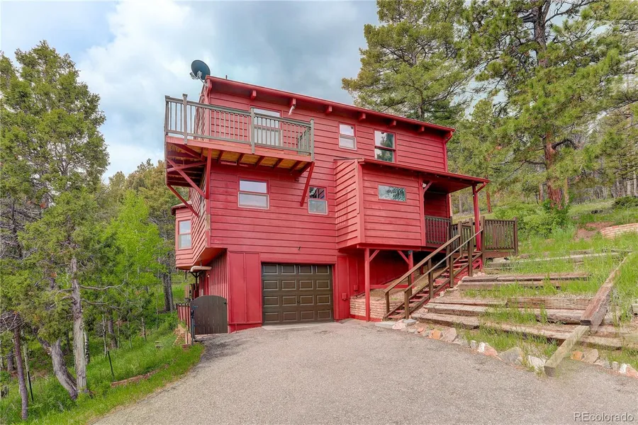 Peaceful & private mountain living with fantastic views! This charming 3 bedroom, 2 bath home on 2 beautiful acres is your perfect mountain retreat. Vaulted ceilings on the main floor with many windows make this open floor plan light & bright. The living room showcases a cozy stone gas stove fireplace, wood beams & barn wood paneling. Amazing views from the bay window in the dining area which opens to the kitchen with new barn style doors for the laundry area. Immerse yourself in the Colorado mountain lifestyle on the new, large deck while enjoying the fantastic mountain views, happy hummingbirds & abundant wildlife. The open floorplan with new laminate floors offers the perfect flow for entertaining family & friends. The main level has 1 bedroom & 3/4 bath. The primary bedroom suite is privately situated on the upper level with remodeled ensuite bathroom featuring dual sinks. The large,...