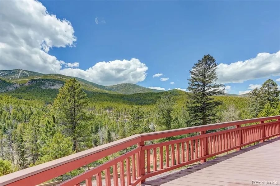 Located in Black Mountain Estates, this 2,343 sq ft retreat offers 3 beds, 2 baths, and stunning sunset views. Enjoy an open floor plan with large windows in the living, dining, and kitchen areas, featuring granite countertops and stainless steel appliances. High and vaulted ceilings add spaciousness, while the primary bedroom delights with built-ins and a double-sided fireplace. A Jack-n-Jill bath serves the primary bedroom and main floor. The second bedroom shines with a vaulted ceiling and French doors, and access to the outside. Downstairs houses a family room, third bedroom, full bath, laundry and lots of storage. HUGE DRIVEWAY IMPROVEMENT COMMENCING OCTOBER 28TH!! NEW PRICE WILL BE $750,000 UPON COMPLETION. The retaining wall will be rebuilt with large cement blocks, and the driveway will be graded up to the garage/workshop with a potential for a 3-car garage!! In 2021 a new roof, gutters on the workshop, fence, furnace and water heater were installed. The property has a shared driveway and is close to both Conifer and Evergreen amenities with a commute of 45 minutes to Denver's central business district and 1 hour and 15 minutes to Denver International Airport.