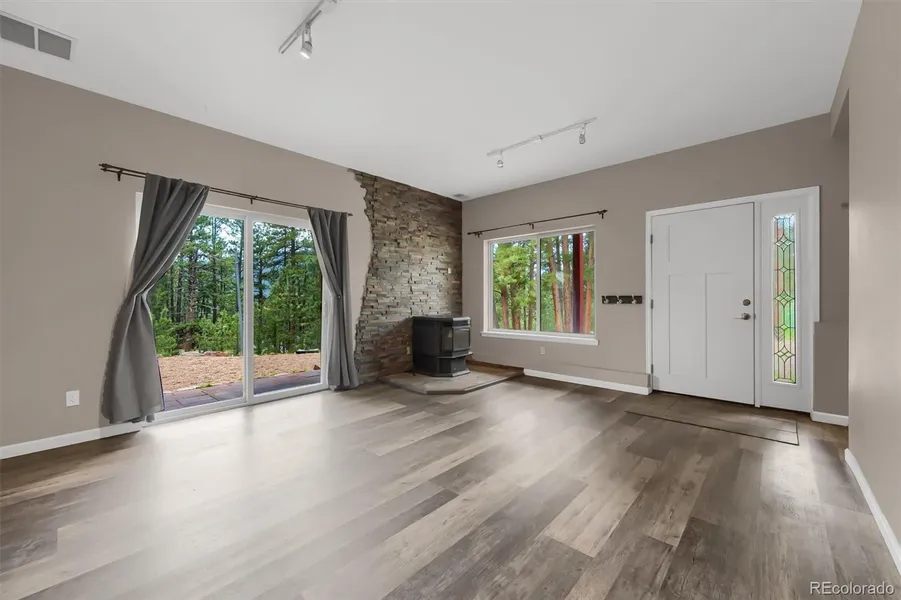 Beautiful four bedroom, two bath home for sale in Indian Hills! This home lets in a ton of natural light with its many windows and scenic views. The spacious, open floor planned design is perfect to make your own. Well maintained inside and out throughout the years. Don't forget about the cozy pellet stove, hardwood flooring and cleaned carpets. Property is in an area where you can choose Evergreen or Conifer High School. One mile to Mount Falcon. Open space park close to 285 and quick route to Littleton, Lakewood and Denver.