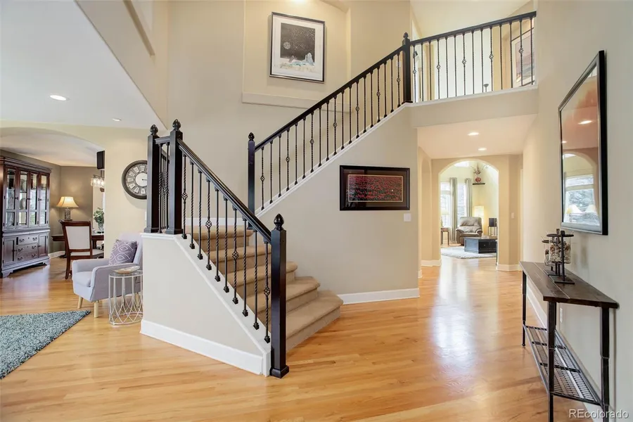 Welcome to your dream home in the picturesque Meadow Ranch neighborhood! This beautifully updated two-story residence offers an abundance of space and luxury with five bedrooms and five bathrooms, perfect for accommodating family and guests. As you step into the primary suite, you'll be greeted by an oasis of relaxation, featuring an upper deck hot tub where you can unwind under the stars. The suite also includes a giant custom walk-in closet with an integrated laundry area, making everyday living a breeze. The heart of the home is the large open kitchen, designed for both functionality and style. It includes an island with additional storage and seamlessly flows into the two-story family room, where a custom stone fireplace creates a warm and inviting atmosphere. The main floor features stunning hardwood floors, adding a touch of elegance to the space. A dedicated study provides a quiet retreat for work or reading, while the back patio showcases a charming water feature, perfect for outdoor relaxation and entertaining. Descend to the finished basement, a true entertainment haven. Here, you'll find a fifth bedroom with a large walk-in closet, a bathroom with a walk-in shower, a wet bar, wine storage, a media room, and a game room, offering endless possibilities for fun and leisure. Parking is never an issue with a three-car garage and an extended driveway providing ample space for additional vehicles. The upper level of the home includes four spacious bedrooms, with a Jack and Jill bathroom connecting two of them, and a private ensuite in the fourth bedroom, ensuring comfort and privacy for everyone. With two convenient laundry locations, a new furnace and AC, and ample storage throughout, this home is designed to meet all your needs. Nestled on a quiet cul-de-sac, this stunning property offers a tranquil and private lifestyle, making it the perfect place to call home. Don't miss the opportunity to make this exquisite residence yours.