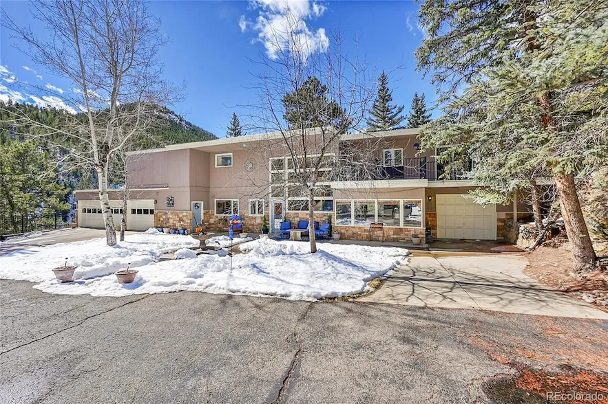 $500K BELOW RECENT APPRAISAL! Tucked away in the exclusive Upper Bear Creek area of Evergreen, this Historic private gated retreat is pure Colorado magic. Built in 1950 by the "Baroness of Cadillac Canyon". Floor-to-ceiling windows showcase breathtaking snow-capped peaks, while the mid-century modern design blends seamlessly with nature and a 75' foot section of creek frontage. Step outside to crisp mountain air, towering pines, and total serenity your perfect escape. Upper Bear Creek is a historic gem, once a retreat for Hollywood elites. Today, it offers peaceful mountain living just minutes from Evergreen Lake, scenic hiking trails, and the charming shops and restaurants of downtown Evergreen. Whether you crave adventure or relaxation, it s all right here. Rarely does a home like this come on the market and it's just a short drive from Denver or ski areas. Whether you're looking for a...