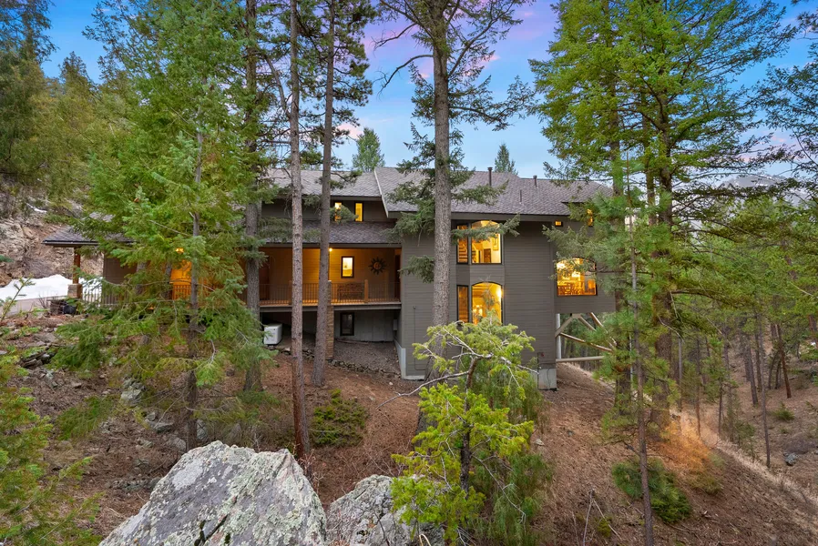 Gated Overlook location epitomizes the Evergreen lifestyle offering close-in convenience and ultimate privacy surrounded by the sounds of nature. Tucked into a story-book setting with rock outcroppings and a mitigated pine tree oasis, this updated custom home has a well-conceived open floor plan with walls of glass framing the natural landscape. Sophisticated-mountain casual look features hickory floors, glass paneled stairways and quartz and granite countertops. Sleek central kitchen has unique custom bamboo Crystal cabinetry, 2nd sink, Dacor 5 burner gas cooktop and Kitchen Aid double convection ovens plus 40" refrigerator. Its built-in leathered granite circular bar seating is supplemented by a large breakfast nook and opens to a vaulted family room anchored by a granite surround gas fireplace. One of many synthetic decks is accessible from the kitchen including a sky-lit covered area with hot tub plus gas grill partition. Main level guest suite with French door entry, walk-in closet and private 3/4 bath accesses the south-facing deck and can double as a 2nd office. Framing the mountain landscape, immense picture window enhances the formal dining room while the lofty living room is exceptional space for entertaining. Powder bath and laundry complete the main level. Upstairs the primary suite imparts life among the treetops with its own deck plus Elfa organizers in walk-in closet. Spa-inspired bath is finished with under-lit espresso cabinets, soaking tub and steam shower. Office niche looks out to the private setting. Children's wing has two good-sized bedrooms that share study area and a 3/4 tiled/granite bath with rainfall shower door. Library loft features movable bookshelves - a great multi-purpose space. Walk-out level bonus room has cork flooring making an ideal gym or play room. Heated workshop has three 200 volt circuits. 2023 hail resistant composition roof; circulating hot water system; advanced treatment septic; ultra-violet water treatment; dog run.