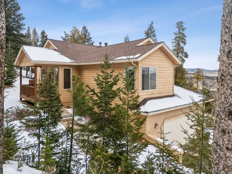 Discover your Rocky Mountain Sanctuary in this stunning 3 bed, 3 bath, mountain contemporary home nestled in the pines in beautiful Evergreen, Colorado. Upon entrance, you are greeted with a dramatic wall of windows that frame panoramic mountain and snowcap views welcoming the spirit of the outdoors, indoors, transforming the vaulted ceiling Great room into a calming & serene space. A striking double-sided tile surround gas fireplace will warm you on chilly winter nights. The main level boasts a light-filled formal living and dining room adjacent to a chef's kitchen beautifully appointed with hardwood flooring, a granite island with a gas cooktop, stainless steel appliances, abundant wood cabinetry, a pantry, and a breakfast nook that opens to a deck perfect to enjoy your morning cup of joe while watching neighboring wildlife pass through the 2 acres the home sits on. In just a few mon...