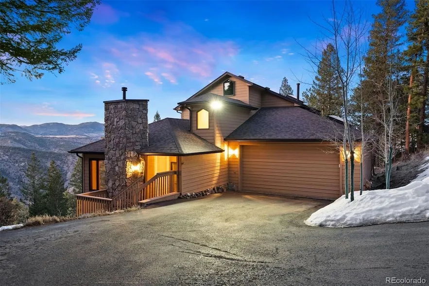 Wake up to breathtaking Rocky Mountain Continental Divide views from nearly every window of this custom-designed Mountain Contemporary masterpiece. Situated on over an acre of pristine land, this exquisite one-owner home embodies the ultimate Colorado lifestyle, where every day feels like a getaway. Stunning rock wall accents the paved driveway leading to a covered front porch and deck, perfect for seamless outdoor living. Step into the foyer, where a wall of windows in the living room frames awe-inspiring mountain vistas. Rock-surround fireplace adds warmth and charm, ideal for entertaining or quiet nights in. A custom buffet enhances the space, while open kitchen boasts double sinks, an island, a spacious walk-in pantry, and dining area designed to capture the views. Thoughtful details include custom cabinetry, solid surface countertops with built-in sinks, an appliance barn, & a built-in work desk. The main floor also features laundry room, additional bedroom, & bath. Oversized three-car garage offers ample space for vehicles, toys, & workshop, with a second staircase leading to lower level. A dedicated storage area for skiing, biking, camping, and hiking gear for the outdoor lifestyle. Private top-floor primary is a luxurious retreat, with a serene library room & see-through fireplace. His-&-her bath spaces, massive walk-in closet + hidden valuables room. On the lower level, views continue in a spacious family room. Guest bedroom with a Murphy bed, a full bath, built-in office, & additional storage complete the space. Multiple decks provide stunning outdoor areas to entertain, relax, & take in the surroundings. Despite its peaceful setting, this home is conveniently located less than 10 minutes from major grocery stores, 15 minutes from downtown Evergreen s boutiques and caf s, and just 30 minutes from downtown Denver. Beaver Brook Trail, and Mt. Vernon Canyon Club are all within easy reach. Come experience mountain living at its finest your dream home awaits!