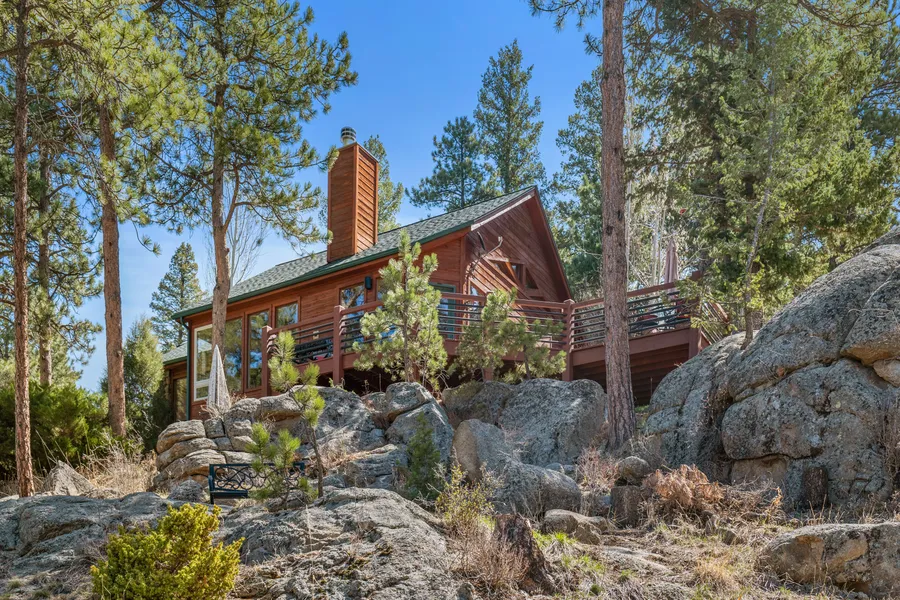 Unparalleled Mountain Views and first time on the market! Nestled on 2 acres with breathtaking panoramic mountain views with direct access to 500 acre Cub Creek Park open space, this custom-built Mountain Contemporary home seamlessly blends luxury and nature’s beauty. Offering 5 bedrooms, 3 bathrooms, and expansive indoor and outdoor living areas, this well-planned design is an entertainer’s dream. The main floor features a stunning Great Room with soaring ceilings, walls of windows, and a double-sided dry stack granite fireplace, creating the ideal open-floor plan setting for relaxation by the fire or entertaining guests. The dining room opens directly to the main deck, perfect for enjoying outdoor meals or hosting gatherings. In the kitchen, enjoy extraordinary Brazilian quartzite countertops, newer appliances, a wine fridge, and a walk-in pantry. Additionally, the main floor offers a bedroom, a versatile office, and a bathroom. Upstairs, the entire floor is dedicated to the private Primary Suite, which includes an attached flex room, an en-suite bathroom, a walk-in closet, and private access to a second deck. The luxurious en-suite bath boasts double sinks, a soaking tub, a walk-in shower, and a bidet. The lower floor features a spacious family room with custom built-ins, 3 additional bedrooms (one currently used as an exercise room), and a full bath. A convenient laundry room with a built-in laundry chute from the primary suite adds to the unique functionality of this home. Recently updated with fresh paint and new carpet, this property is move-in ready. The 2-year-old roof and 18 month old furnace ensure peace of mind, while the Invisible Fence on one of the acres adds an extra layer of security for pets. Conveniently located adjacent to Cub Creek Park and Bell Park, HWY 285/Conifer to the south and Evergreen/I-70 to the north.