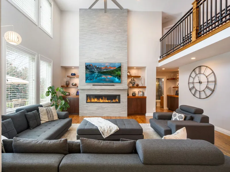 The main and upper levels underwent a complete renovation in 2020 with over $200K in upgrades. Highlights include a dramatic two-story stone fireplace, 5” baseboards, solid 5 panel core doors with translucent glass, new real wood flooring, and custom railings. The main-level office can function as a non-conforming bedroom, and the guest bath boasts a spa-like shower with ceiling rain head and body sprays.