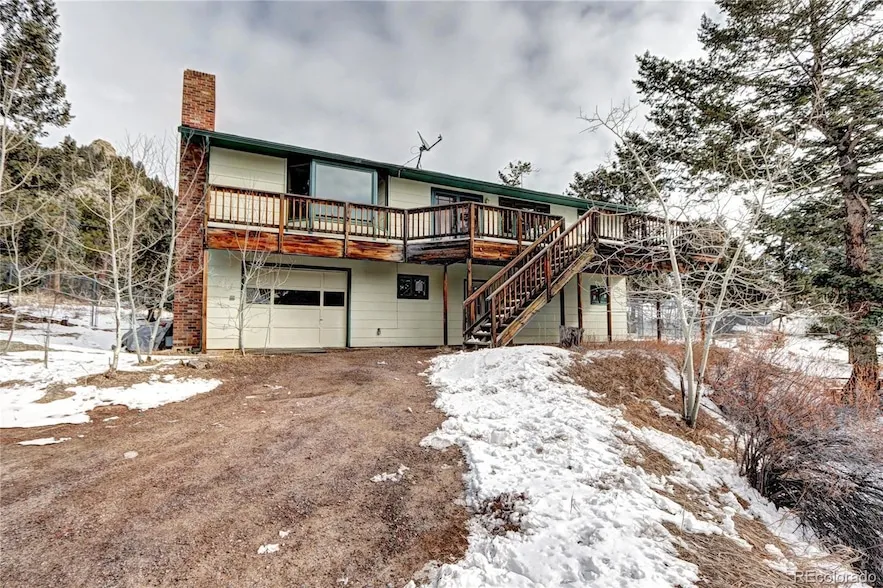 Discover the potential of this raised ranch-style home on 5 acres in the serene mountain setting of Morrison. Featuring 4 bedrooms, 3 baths, and a 1-car attached garage, this property offers privacy and breathtaking natural beauty, complete with stunning rock outcroppings, wooded surroundings, and a circular driveway. The main floor has a spacious living room with a wood-burning fireplace framed by brick and a large bay window that fills the space with light. The primary bedroom includes a 3/4 en-suite bath, walk-in closet, and private patio access. Two additional bedrooms and a full bath complete the main level, with wood paneling throughout adding rustic charm. The walk-out basement offers an additional bedroom and half bath, ideal for added flexibility. The property is equipped with propane, a septic system, well, and electricity. While the home needs a complete renovation, its proxim...