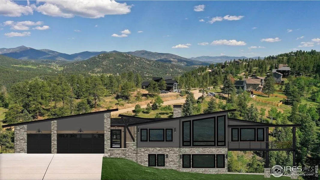 A masterpiece of mountain(top) modern luxury! Three price tiers to choose from: high-end ($1.795M), luxury ($2.035M) and ultra-luxury ($2.295M). This house is loaded with all the conveniences, functionality and luxury features you want in a home. Like having a custom home built but with none of the hassle. Land acquisition, surveying, architectural drawings, building plans, engineering and permitting are complete and builders are ready to break ground today! They are just waiting on you to choose your appliances, finishes and systems! Custom modifications considered. Purchase the land, improvements & architectural plans for $350,000 cash and get an interest-only construction loan for the build. Situated on a sunny, south facing lot to maximize privacy and views, this home is quintessential Rocky Mountain modern with stucco, stone, wood and steel accents. Open layout, vaulted ceilings, oversize picture windows, and oversized doors flow to expansive decks and patio, integrating indoor/outdoor spaces throughout. Views from every angle, whether you are relaxing on the deck, gathering at the kitchen island, hosting in the formal dining room, being cozy by the fire in the great room, or doing activities on the lower level that flows out to a covered patio. Drive right in the oversized 3-car garage and enter through the mud room. Main level includes primary with fireplace and 5-piece bath, laundry and office (or 2nd main level bedroom). Lower level walk-out includes huge rec/media/gym/flex space plus 3 bedrooms, 2 w/ensuite baths + hall bath, second laundry room and huge, climate controlled storage room. Located in Evergreen's newest mountain neighborhood, and enjoy the best of all worlds from this mountaintop perch with views to the horizon and hiking, biking, paddle boarding, dining, shopping and all the amenities of Evergreen just minutes away. Come check it out! These builders are raising the standard for mountain(top) modern luxury!