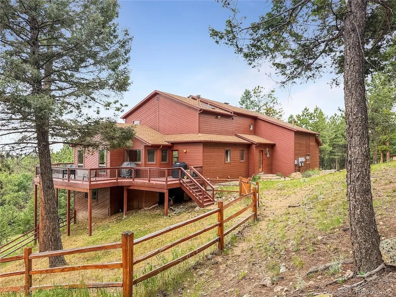 Best value in Conifer! Imagine waking up in this Mountain Retreat to breathtaking mountain views, sipping your morning coffee on a sprawling deck surrounded by towering pines, with 8 acres of horse-ready land at your fingertips does this sound like your dream escape? Watch the video tour at Nestled in the serene Richmond Hill area of Conifer, CO, this stunning property offers the perfect blend of modern luxury and natural beauty. Step inside to discover a spacious open-concept interior with light-toned hardwood floors that flow seamlessly throughout. The gourmet kitchen will steal your heart, featuring granite countertops, white cabinetry, and a large island with bar seating ideal for hosting friends or family gatherings. The living area is a showstopper, with expansive windows showcasing panoramic views, a cozy wood-burning stove, and access to a large deck where you can soak in the peaceful surroundings. Craving some fun? A versatile recreation room with a pool table awaits, perfect for game nights or unwinding after a day on the trails. This property is setup for as a private mountain oasis or a horse lover s paradise, with ample space for stables or barn, all set against a backdrop of distant peaks and lush evergreens. Septic system suitable for 6 people. Whether you re seeking a quiet retreat or an active mountain lifestyle, this home delivers rustic charm with contemporary comforts in an idyllic setting. Don t miss your chance to own this slice of mountain paradise schedule a tour today and start living the Conifer dream!