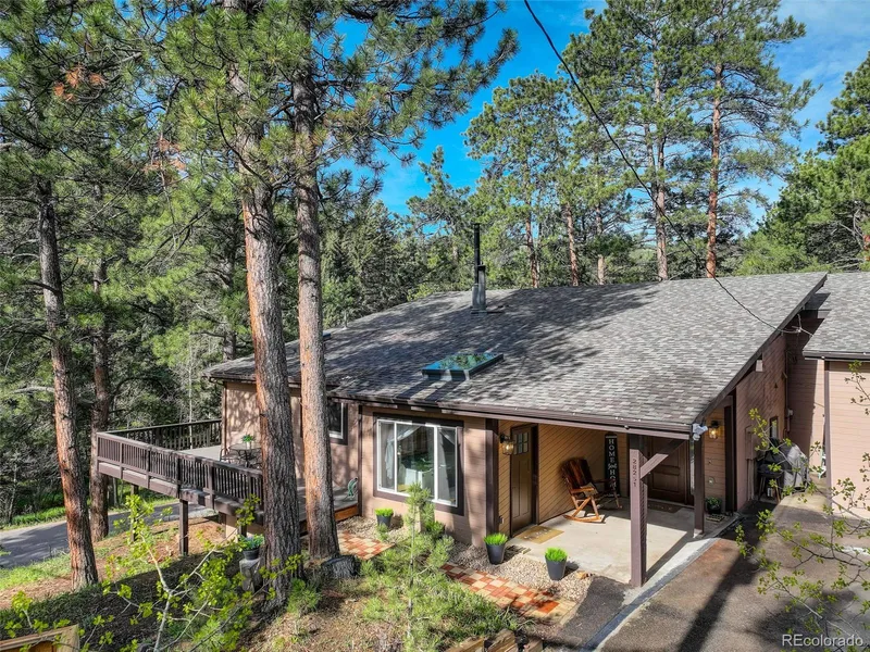 Welcome to your mountain dream home! Nestled in the scenic community of Conifer, this beautifully updated 3 bedroom, 3 bathroom retreat offers 2,500 square feet of thoughtfully designed living space with modern upgrades & rustic charm throughout. The current owners have taken meticulous care while owning this home & have put their hearts into the updates they have completed. The open-concept main floor is bright & inviting, featuring an updated kitchen, ample cabinetry, & seamless flow into the spacious dining & living areas. The highlight of the main level is the expansive primary suite, offering a true sanctuary with large custom walk-in closets, en-suite bathroom, & a cozy fireplace. In this suite, you'll discover the "Laundry Lovers" room, an exceptional space designed to meet all your laundry needs. The primary also has a loft that's perfect for storage or your own creative idea. The basement is an impressive space featuring a custom, hand-crafted bar that adds character and charm-perfect for hosting unforgettable gatherings, enjoying game nights, or simply unwinding in style. Perched above the garage, the guest suite offers a versatile & private haven that effortlessly functions as a secluded bedroom, inspiring home office, or creative studio. Thoughtfully designed for both comfort and independence, this suite also features its own private entrance at the rear of the home, making it an ideal retreat for guests, remote work, or extended stays. This home features a new roof, fresh exterior paint, & brand new Trex decks, to maximize outdoor living spaces. Located on a quiet, wooded lot just minutes from Conifer High School, local shopping, dining, & countless outdoor adventures, this home checks all the boxes of quintessential mountain living. Ample parking available with a 2-car garage & additional covered carport. Whether you're searching for a full-time residence or a peaceful escape, this stunning home is move-in ready & waiting for you.