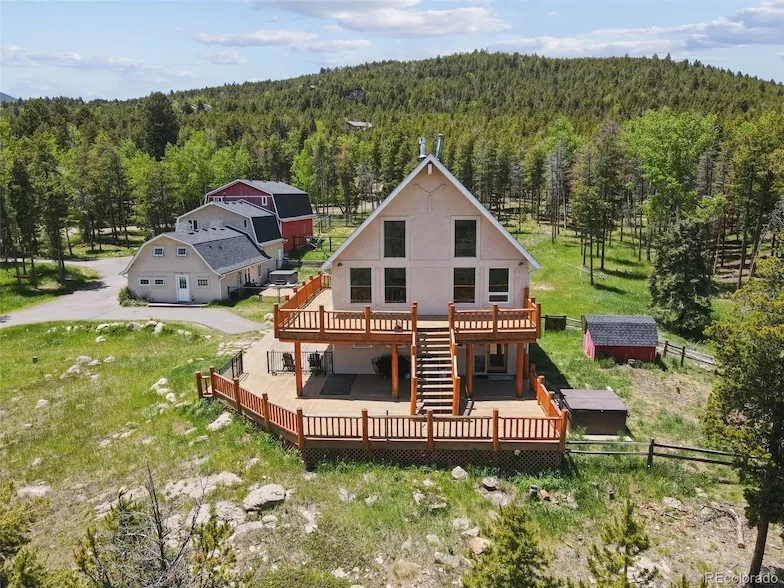 Welcome to your Shadow Mountain retreat, situated on nearly three gently sloped acres, backed by thousands of acres of national forest, a unique property full of opportunities. The main house is a warm 3 bedroom, 2 bath retreat featuring an open concept living area, an office loft for remote work and expansive two level deck ideal for entertaining or simply enjoying mountain living. Just a step away, the charming carriage house adds additional value with it's own living area, bedroom, kitchen, full bath and laundry. It would be great for your guests or multigenerational living. The carriage house has a proven rental history that could bring in extra monthly income. Outbuildings include a spacious barn with room for all your "toys" plus an upper attic storage area, and a heated workshop with heat and water, for all your projects. Situated on a corner lot, the property includes two fenced in areas perfect for your pets and animals, a hot tub, and you share your property line with thousands of acres of national forest and trails, for your hiking and outdoor adventures. Located about 10 minutes from town, you will love the mountain life! Don't miss the chance to own a true Colorado mountain sanctuary..... schedule your showing today!SELLER IS OFFERING $20,000 IN CONCESSIONS TO BUYER FOR RATE BUY DOWN OR OTHER CLOSING COST.
