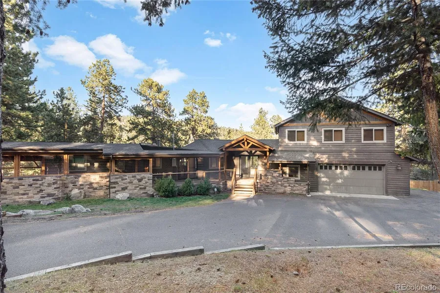 Nestled in one of Evergreen's most desirable neighborhoods, this beautifully maintained five-bedroom, three-bath home offers the perfect blend of mountain serenity and modern comfort. Just minutes from Evergreen Lake and Downtown Evergreen, you'll enjoy easy access to local shops, dining, and year-round outdoor recreation-all in a setting ideal for peaceful evening ventures beneath the pines. The main home features an inviting open layout with abundant natural light and mountain charm throughout. A completely separate apartment-featuring its own kitchenette, bedroom, bathroom, and laundry-offers endless possibilities for rental income, guest quarters, or multigenerational living. Outside, the spacious lot feels like your own private retreat with mature trees, mountain views, a covered "Dogio" for your special furry family members, and even a treehouse for added adventure. A newer roof an...