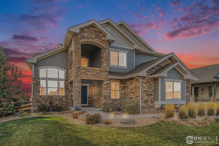 Experience breathtaking mountain views and exceptional craftsmanship at 8536 Rogers Loop, a stunning residence in Arvada's coveted Leyden Rock community. Thoughtfully enhanced with extensive upgrades, this home blends refined luxury, functionality, and Colorado indoor-outdoor living. The main level showcases engineered hardwood floors, custom wainscoting, and expansive windows that frame sweeping Front Range views. At the heart of the home, the chef's kitchen impresses with stainless steel appliances, full-extension dovetail cabinetry, quartz countertops, gas range with pot filler, dual pull-out trash systems, and a generous walk-in pantry-ideal for everyday living and entertaining. The family room features a cozy fireplace and a premium integrated audio system extending to the basement, primary suite, and upper level. Step outside to the covered deck with custom blinds, curtains, lighting, outdoor weatherproof TV, shades, and an outdoor fireplace-creating a true four-season extension of the living space. The primary suite is a private retreat offering its own deck, fireplace, spa-inspired five-piece bathroom, custom blinds, and a walk-in closet. Additional bedrooms provide flexibility for guests, home offices, or multi-generational living. The finished basement expands the home's versatility with a wet bar, two guest bedrooms, enhanced lighting, and a large flex space with direct access to a covered paver patio. The garage is equally impressive with epoxy floors, mounted cabinetry, counters, sink, beverage refrigerator, and a driveway extension. Additional highlights include newer exterior paint, enhanced landscaping, fenced yard improvements, radon mitigation, humidifier, gutter additions, solar shingles, and numerous mechanical and electrical upgrades throughout. Set on a generous lot with access to trails, open space, and top commuter routes, this home offers a rare combination of panoramic views, thoughtful enhancements, and luxury finishes in Northwest Arvada.