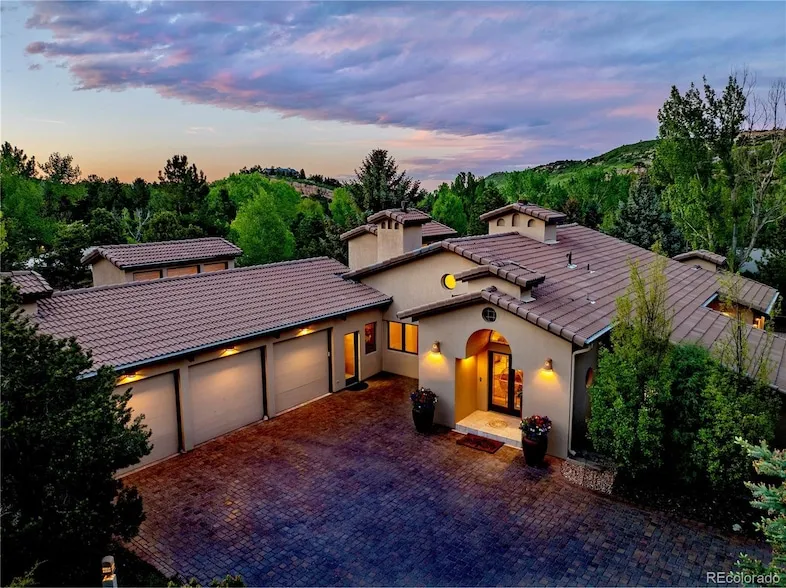 Located in the heart of sought-after Willowbrook, this modern Spanish-style custom home is newly refreshed, reimagined, and move-in ready. Inside, the vaulted great room showcases wood-beamed ceilings, solid walnut floors, adobe fireplace, new wet bar with quartz countertop, and whole-house 5-zone sound. The freshly renovated kitchen offers quartz countertops, walnut cabinetry, induction range, wall oven, new refrigerator, energy-efficient dishwasher, and updated modern lighting. It flows to the solarium, formal dining room, and private cobblestone patio perfect for entertaining and grilling. Step down to the primary suite with vaulted ceilings, cozy fireplace, private deck access, and spa bath with heated floors, jetted tub, dual vanities, dual showers, walk-in closet, and hot water recirculation. Laundry with new sink and dryer is conveniently nearby. Two additional bedrooms include new clerestory windows. First bedroom optimized for productivity as a sleek modern office, it easily transitions into a comfortable bedroom. Second bedroom with bright windows and Closet Factory storage. Updated full bathroom with reglazed tub and quartz countertops. The step-out basement with new carpet, custom bookshelves, storage, and backyard access. 3-car garage includes attic storage and heated workshop, with plenty of room for a golf cart!A cobblestone paver driveway, terraced retaining walls, mature pines, aspens, and spruce create a striking sense of arrival. Rebuilt multi-level decking, integrated lighting, zoned sound, new patio awning, roof ice-melt system, fire-mitigation perimeter, and so much more. Willowbrook amenities include 800+ acres of private open space, trails for hiking, biking and riding, equestrian stables, tennis & pickleball courts, Arrington Park, playground, historic Colorow Cave, and nearby Red Rocks Country Club. Peaceful foothills living just minutes from modern conveniences. Visit for 3D tour, videos, and more.