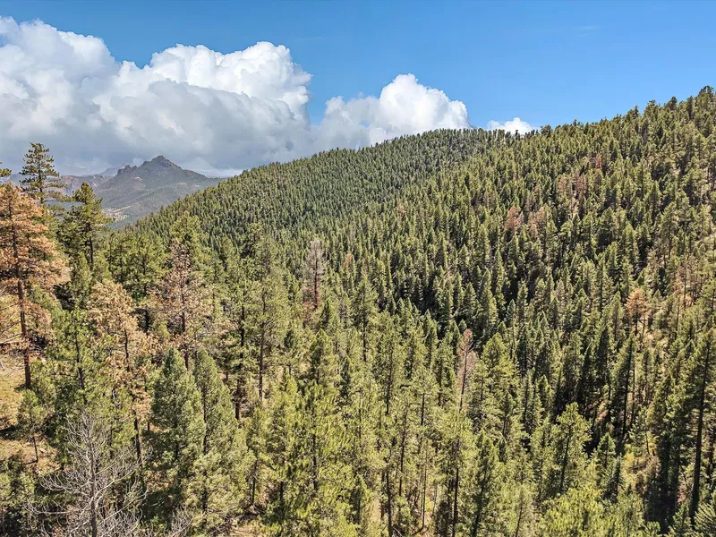 About 5 miles from the Richmond Hill exit on Highway 285, you'll find yourself immersed in breathtaking mountain landscapes. Follow Ranch Elsie Road, and it will lead you to 13809 Elsie Road, where you'll be greeted by towering Ponderosa pines, crisp mountain air, clear blue skies, and just over eleven acres of untouched terrain, ready to be transformed.