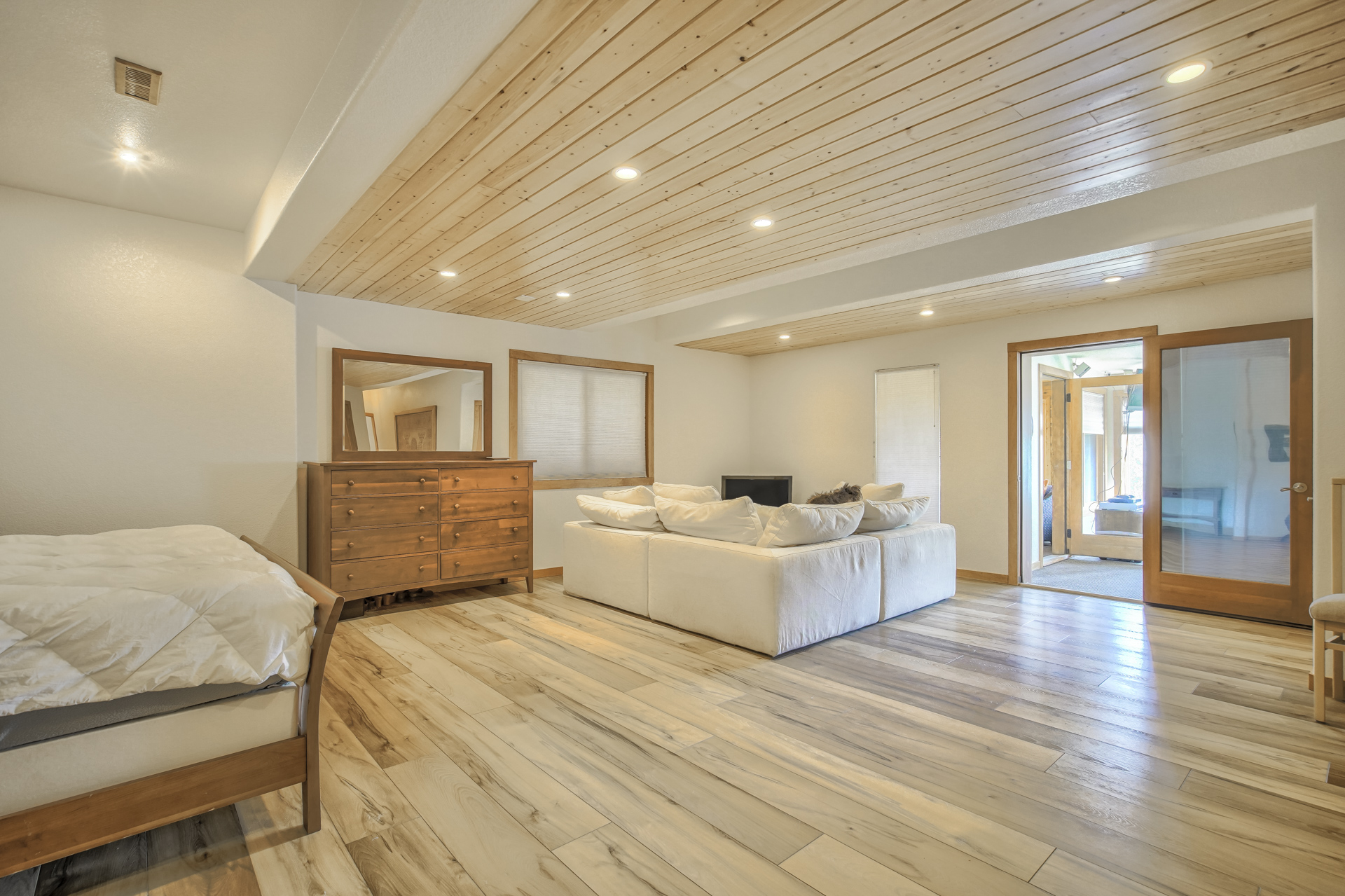 The property has had $300K of fire mitigation done, indicating that the forest has been cleared of excess brush and debris reducing the likelihood of wildfire. The two acres of fenced dog run and one-acre fenced horse corral are great additions to the property, making it attractive to pet lovers and horse enthusiasts who can let their animals roam free while ensuring their safety.