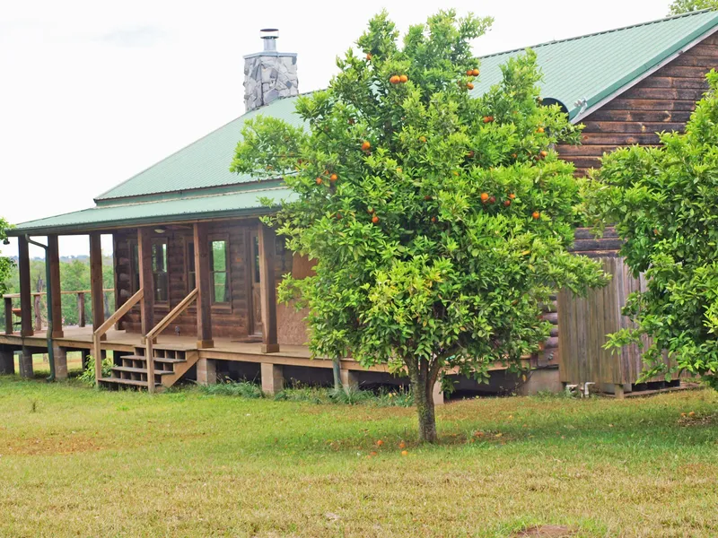 N FL LOG HOME ON MINI-RANCH -- This listing features a hilltop log home with a 2400 sq ft barn and an 800 sq ft bunkhouse (1 BR, 1 bath). The high-end log home features lots of upgrades and custom features like a stone fire place, solid maple custom wood cabinets, Silestone counter tops, vaulted ceiling with rustic solid wood beams, and hardwood flooring. Theres plenty of built-in interior storage space. The 2-car carport also has generous storage. Three sides of the home are wrapped by porch and decks with tranquil views of rolling pastures and fields. The setting is private but convenient. The hilltop home is one-half mile off the highway just 3 minutes northeast of the charming small town of Monticello and about 35 minutes east of Tallahassee. The D-log home was built in 2004. It has a long-life metal roof and a new air conditioner. A 600 sq. foot pavilion between the home and the barn is ideal for outdoor gatherings and entertaining. Theres also a pole shed for sheltering equipment or hay adjacent to the barn.