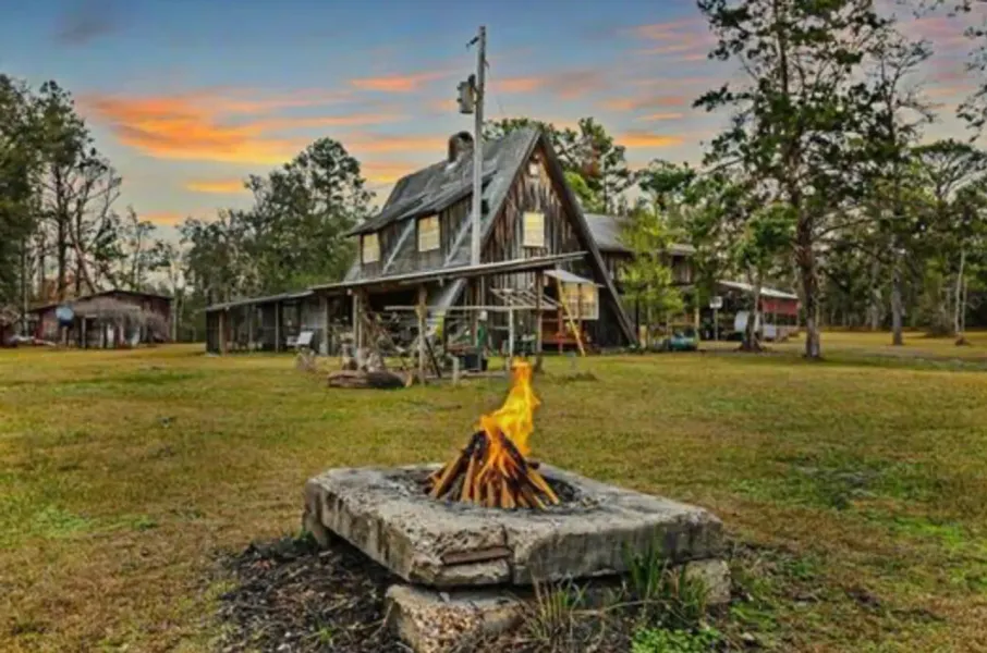 Just 30 miles south of Tallahassee, this 29+/- acre property is a dream for those who love country living and the outdoors. The unique 3-bedroom, 2-bathroom A-frame home is packed with charmhardwood floors, a brick-surround gas fireplace, and a kitchen full of farmhouse character with a wood-burning stove and great storage. Upstairs, cozy bedrooms await, while downstairs, a spacious screened-in room lets you soak in the views year-round. Outside, three picturesque ponds, fruit trees, and wide-open spaces set the scene for hunting or watching whitetail deer, turkey, and small game. A well-equipped workshop, large pole barn, and two-car carport provide all the storage you need.