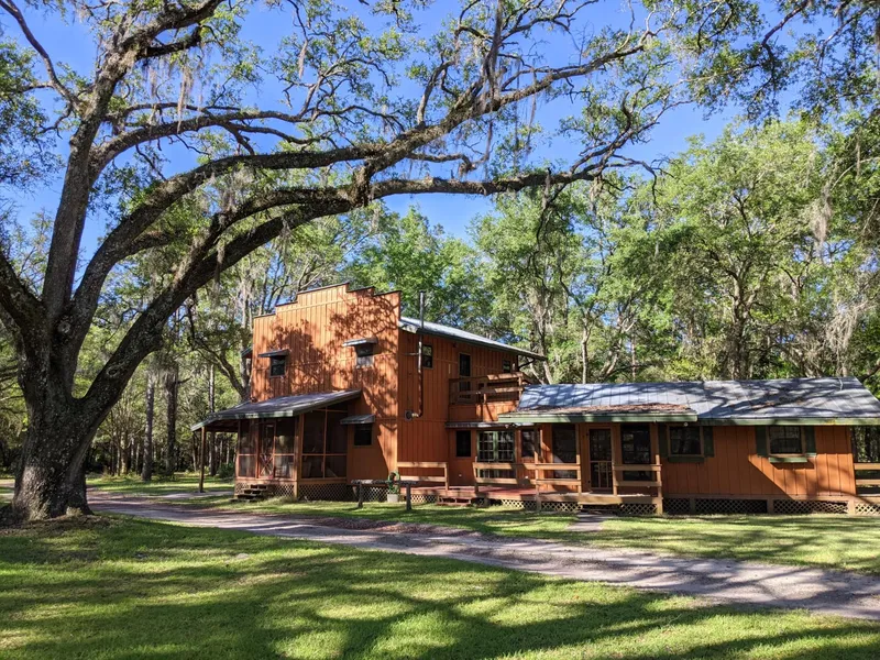 The property boasts significant infrastructure to meet a variety of needs and uses, making it one of the most versatile properties on the market in the area. The main cabin is a 2,662 (h/c) 3/2 well-built with plenty of space and rustic charm, with power, well and septic established. The cabin features a very large upstairs master suite, living area with cocktail bar and wood stove, full kitchen with gas range, plenty of storage for clothes, equipment and supplies, and a carport. Next door to the cabin is a full 24x36 cookhouse with kitchenette and both enclosed and outdoor eating areas, perfect for a fish fry, campfire, or barbeque just bring your friends and family.