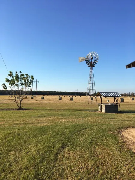 Adjacent to the 20 acre cattle pasture is a large multi-section cattle corral with a covered concrete pad at the head gate area, a working windmill with a wind generated water pump to fill the main cattle water trough automatically, two additional water trough stations (one covered), and a covered dry feed station for cattle.