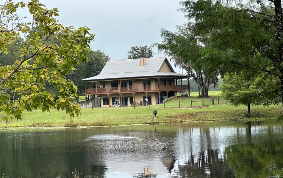 This beautiful country home boasts heart pine floors, tongue and groove ceilings, a wraparound porch, and gorgeous vistas from almost every window. Schaffer Creek borders over a mile of the property. The land consists of acreage that is made up mostly of a combination of pasture and timber. The natural timberland makes up approximately 220 acres of the tract and includes pine, white oak, and countless other species of trees. There are numerous food plots and deer stands scattered throughout the wooded areas. A well-maintained trail system spans most of the boundaries and creek frontage. This provides for multiple entries to the food plot areas, which is very useful for hunting varying wind directions. A 2+/- acre stocked fishing pond and the ample creek frontage both serve as year-round water sources for wildlife. The property has several recently constructed improvements, including gate...