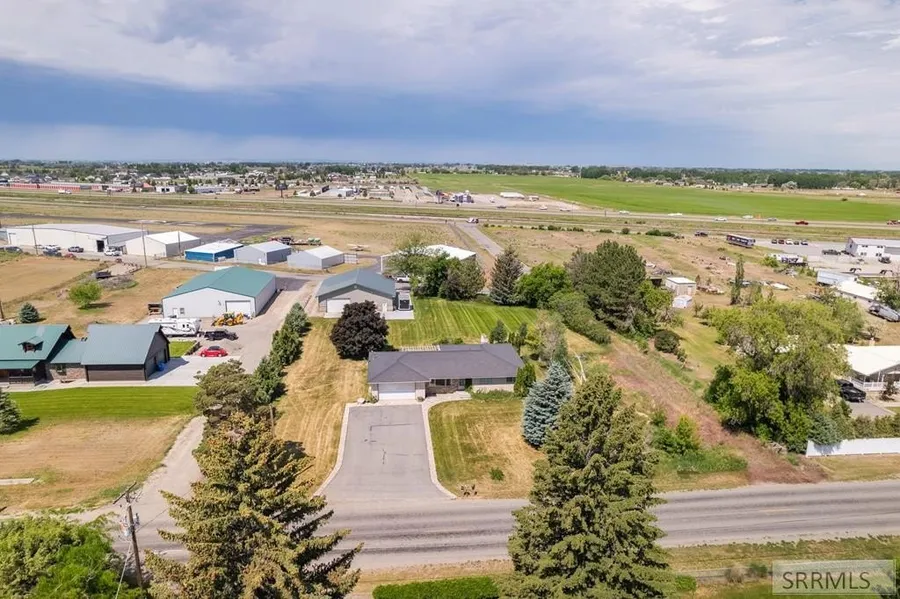 Experience space, comfort, and versatility in this Rigby retreat! Set on 1.4 acres, this expansive 6-bedroom, 3-bath home offers over 3,300 sq ft of thoughtfully designed living space. Enjoy a bright kitchen with stainless steel appliances, multiple fireplaces—including one outdoors—and an oversized basement family room perfect for gatherings. A major highlight is the impressive 50x50 detached hangar/shop, complete with a full kitchen, bathroom, laundry hookups, and hot/cold water spigots—plus direct airport access for aviation enthusiasts or those seeking a flexible workspace. Recent updates include a newer roof (2018), private well with new pump and pressure tank (2019), and a private septic system. With ample storage, beautiful outdoor living space, and room for every hobby, this home perfectly blends comfort, function, and opportunity in one unique property.