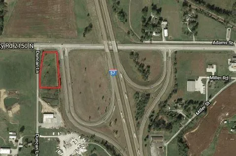 2.4 +/- are multi-use property with high visibility for sale in Jefferson County, Illinois. Highly visible piece of land for commercial, use or whatever it might be. The 2.4 acres borders the entrance ramp to Interstate 57 heading south to Mount Vernon and the exit ramp from Chicago. It also has road frontage on eastbound Dix Irvington Road and road frontage on Duncan Lane. This would a perfect property for a gas station or convenience store.