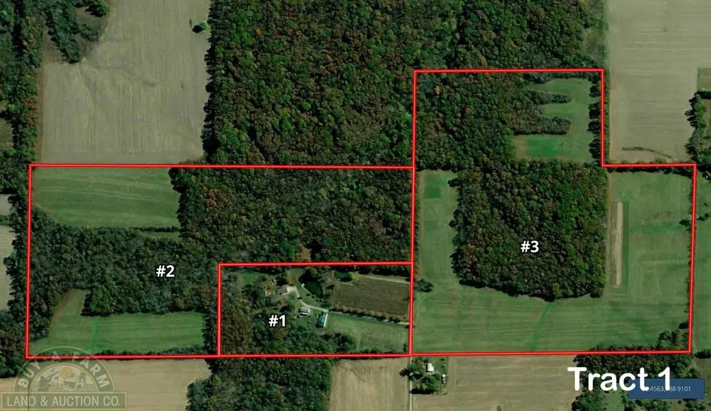 44.5 acres cropland currently under a cash lease agreement until December 30, 2026. Crop income will be prorated to day of closing, at closing. Balance is wooded with very little undergrowth. The timber has not been cut recently. Note: A 40 wide easement will be created from the lane East on the old roadbed between Tracts 1 and 3 for access to Tract 2, if necessary.