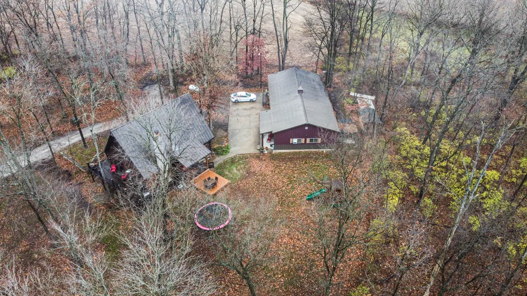 This custom log home is nestled on 9.7 acres with wooded setting and privacy. This home offers over 2680 Sq Ft with 4 Bedrooms and 3 Baths. the kitchen offers island, pantry, and appliances and wood floors. The main floor includes open floor plan with living/dining room with cozy stone fireplace and wood ceilings. The dining area leads to the wrap around deck overlooking the beautiful wooded setting. The Master suite includes lovely Barn Door, double closets, and adjoining bathroom with claw foot tub. Lower level is designed with recreational room, two bedrooms, laundry room with bathroom. The property also includes a 30x60 detach oversized garage with a finished room. The property is beautifully landscaped along with private drive, and Summersville School District. This is a one of a kind custom log home, you won't be disappointed with this home or property.