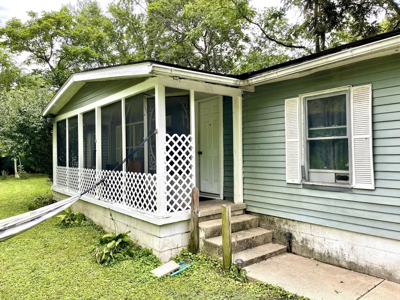 This super cute manufactured home sits on a permanent foundation which is located on a double lot. The lot is full of mature trees and a fully fenced yard. There is a two car detached garage, as well. The home features an open concept family room, dining room, kitchen and office area with vaulted ceilings. The kitchen and bathrooms have all new fixtures, and counters. The master has a private bath room, and the remaining 2 bedrooms share another full bathroom. The home has been renovated and has all fresh paint, new flooring and lots of windows. The front porch has been screened in, as well. The HVAC and hot water heater are two years old. The kitchen is plumbed for a dishwasher. All new windows, and the roof was switched to metal 5 years ago. Current appliances included!