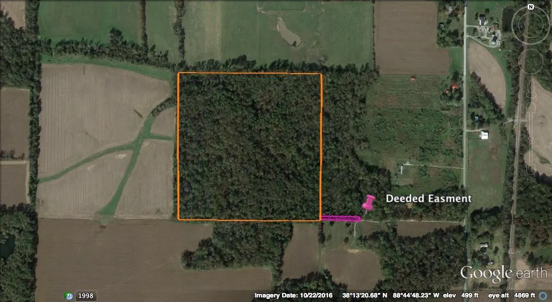 40 +/- acres all timber priced right at $3,125/acre. This land is perfect if you like seclusion as it is located on a dead end road with a short 375 private deeded easement for access. This property is only about 1 hour and 20 min from the St. Louis area and only about 15 min from Mt. Vernon IL.