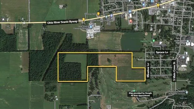 Auction Starts: 9:00 AM 7/24/2023 Auction Ends: 11:10 AM 7/26/2023 Nominal Opening Bid: $450,000. 90.7 acres adjacent to Spring Hills Golf Course in Hanover. Development potential w/location across Meadow Lane from existing residential development. 67 tillable acres. Wooded acreage at rear. . Water Type: Public Available . Sewer Type: Unknown . Legal Description: Parcel 39-14-14-000-001.001-002 . Parcel Number: 391414000001001002 . Tillable Acreage: 67 . Timber Acreage: 23. Note: A Buyer's Premium (Buyer's Fee in WI) will apply for this property. Please see Terms of Sale for details. Broker Licenses: IN; Williams & Williams Marketing Services, Inc.; Philip R. Heiliger., Lic. RB15000163; Williams & Williams Marketing Services, Inc., Lic. AC30400023; Monte Lowderman, Lic. AU1010022