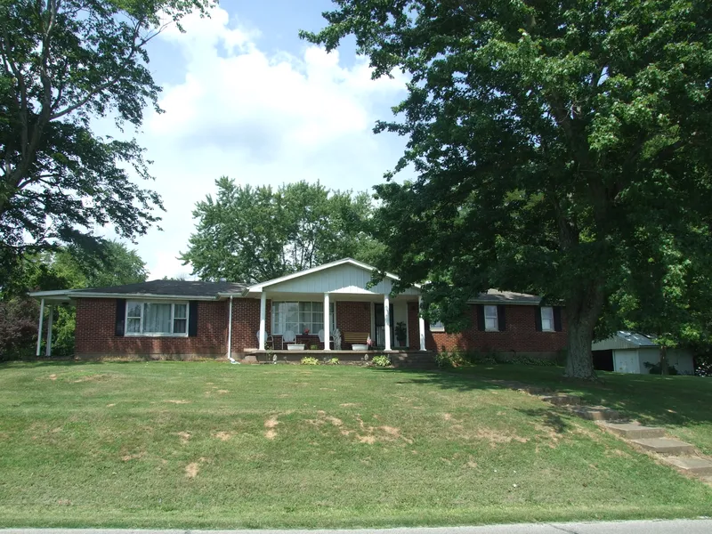 Large corner lot across from Southwestern School. Brick home, front and back covered porches. Patio off large family room. Wood burning stove in living room. Three bedrooms and a small office. Unfinihsed basement with half bath. Two car attached garage and two car carport. large storage shed. Mailbox post does not convey. Immediate possession.