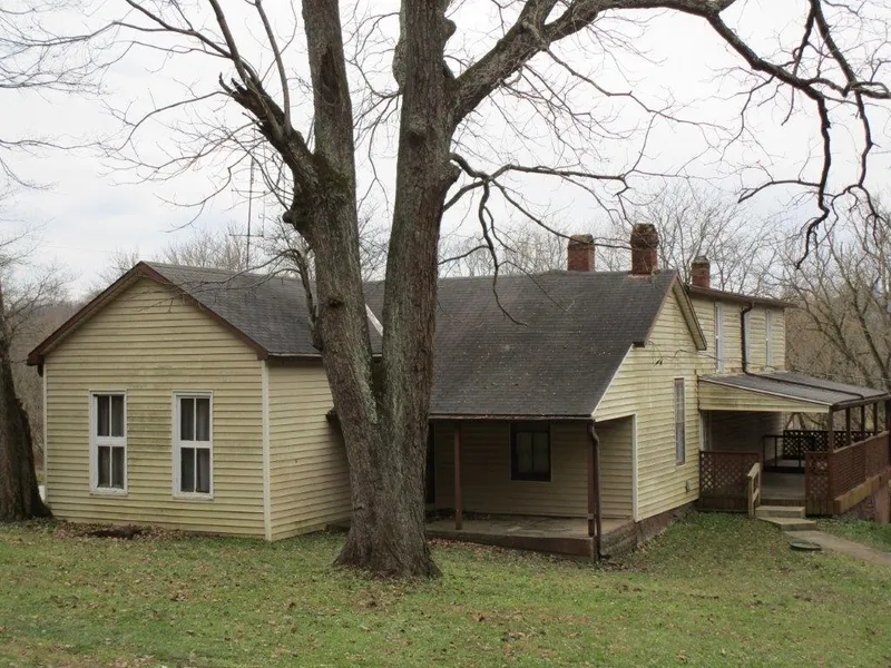 2 story home, conveniently located with an awesome feeling of privacy. Covered side and back porches accent the exterior. Main floor consists of a foyer, living room, spacious eat-in kitchen, bedroom, utility room, and bathroom. Built around the 1900's the upstairs bedroom's await renovation with lathe and plaster repair. The grounds bring visions of Nostalgia from the 1900's barn to the stone walls on the hillside. Dirt floor basement houses a fuel oil tank for F/A furnace, hot water heater and well water holding tank. Detached 2 car garage. Located across from HI-Acres. Property is located just past Splinter Ridge Rd and goes east from there. *Being sold in AS IS condition. Sq.ft per assessor records.