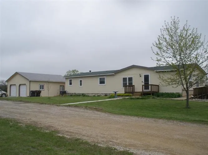 Ranch manufactured home on 40 acres m/l with detached garage and separate workshop. Full finished walkout basement with 2 non-conforming bedrooms. Has hook-up for 2nd kitchen. Sun room. Enjoy the view from the large deck. Small pond.