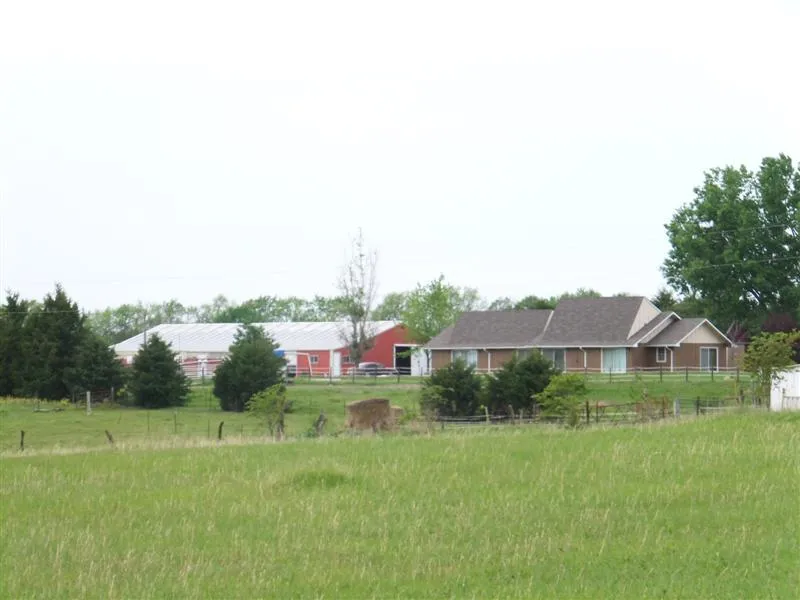 Horse/cattle ranch on 50 acres m/l with stocked pond. All electric home. Stone fireplace with insert.Large master bedroom and bath. Concrete storm shelter. 110 X 60 horse barn with indoor area, 7 stalls, and tack room. 60 X 30 detached garage with workshop and office.